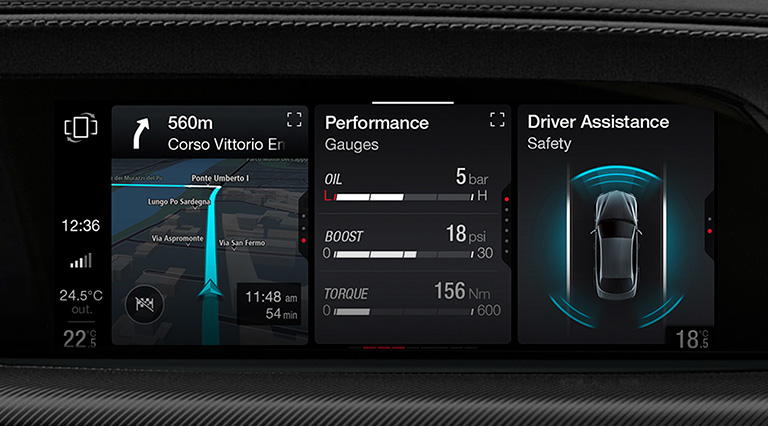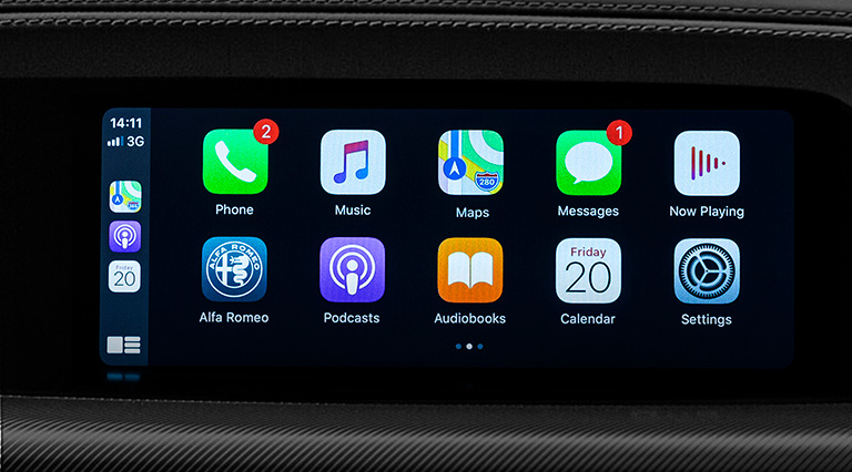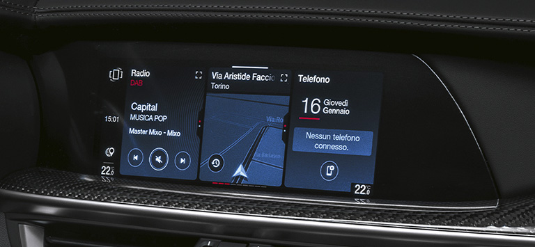 Infotainment sistem Alfa Romeo Stelvio Quadrifoglio modela ima Multi-Touch ekran od 8,8 inča.